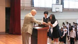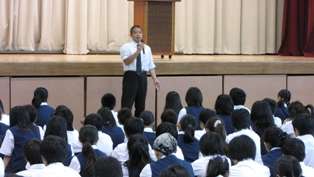 校長先生から「責任」についてのお話、演劇部の表彰を行いました。