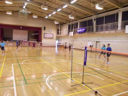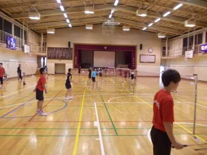 8月12日(金)、夏休みも半分が過ぎました。今日の午前中は体育館でバドミントン部が練習を行っています。暑い中ですが、みんな集中して頑張っています。