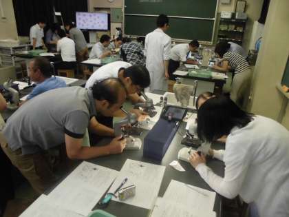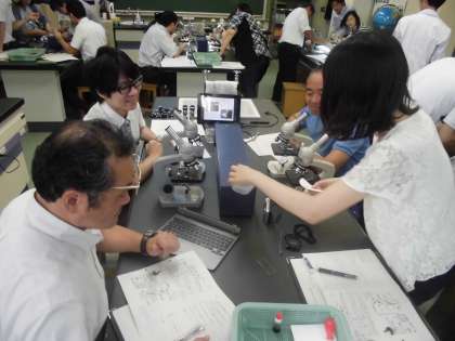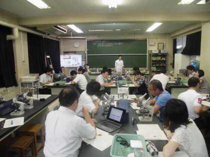 8月31日(水)の午後、ICTの研修を行いました。理科の細胞分裂を教材にICTを活用した授業を受けました。生徒役はもちろん教員(夏休みで生徒はいませんので)です。