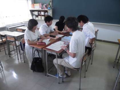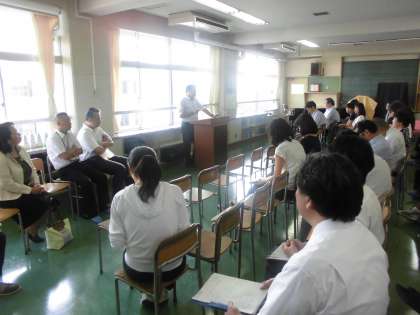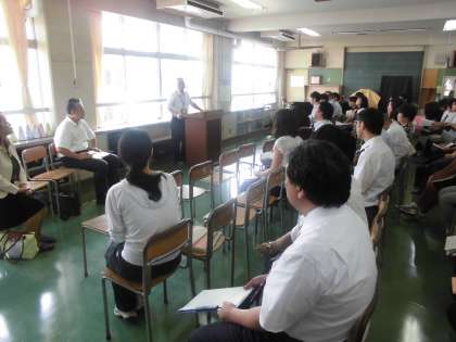 9月1日(木)の午後、喜多見中学校と喜多見小学校の教員で合同研修会を行いました。今年度のテーマは「思考力」をどう育成するか。そのための授業を10月に行うため、指導案の検討も行いました。