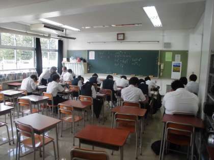 9月3日(土)、2学期に入って最初の土曜日です。3年生は土曜講習を受講しています。今年から基礎コースと発展コースの2コース体制で行っています。受験に向けて、真剣さが伝わってきます。
