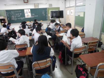 9月13日(火)、英語科の授業です。本校の研究テーマに沿って、指導方法を工夫をして「学びあいができる環境」を整えています。