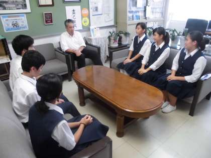 9月29日(木)放課後、新生徒会役員が校長先生を訪問しました。自分たちが取り組むことを校長先生に1人1人が伝えていました。
