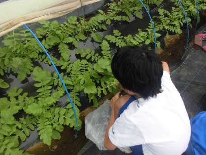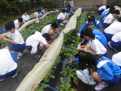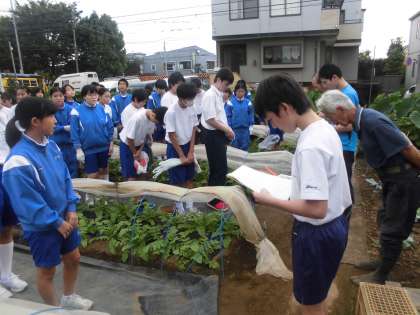 9月30日(金)、大根づくりは間引き作業です。1穴のうち最もいいものを残し摘んでしまいます。間引きしたものは各自が家で調理して、後日そのレポートを提出します。ご家庭でのご協力、よろしくお願いいたします。