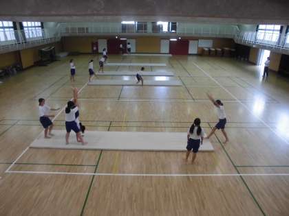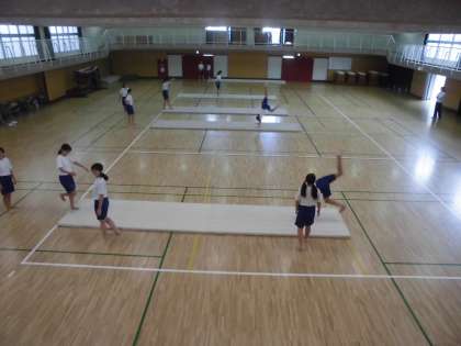 10月6日(木)、1年女子の体育は格技室でマット運動を行っています。生徒は倒立を練習していました。