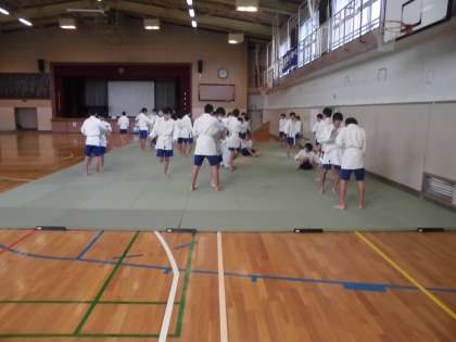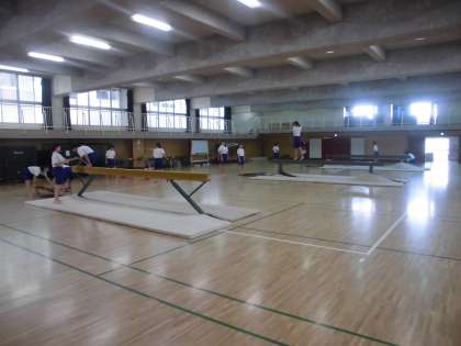 10月7日(金)、3年生の体育は、男子が柔道、女子が平均台を行っています。3年生は、自分たちで話し合い考えながら授業を進めています。