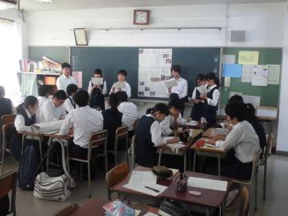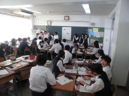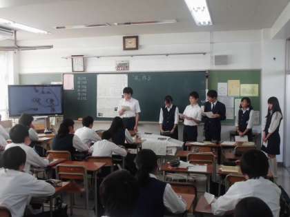 10月12日(水)、5時間目に校内研修を行いました。教科「日本語」の日本文化領域(3年生)で授業を行い、修学旅行での体験の成果を発表していました。日本の伝統技術を知る貴重な発表でした。