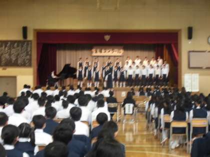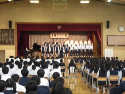 午後は3年生の合唱です。体育館に響く歌声はさすが3年生。