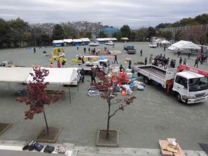 11月2日(水)、明日は本校が会場になり、喜多見地区の区民まつりが開催されます。生徒ボランティアも37名参加します。校庭では着々と準備が進んでいます。