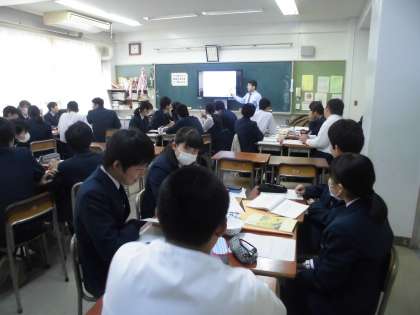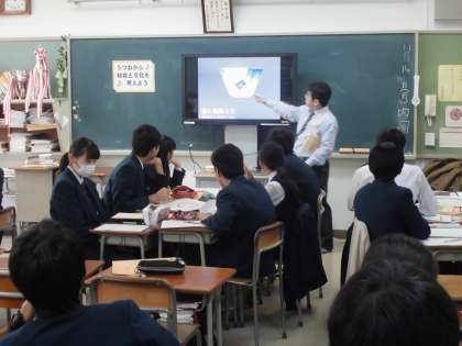 11月14日(月)、3年生の教科「日本語」では、「うつわ」をとおして食事や文化について学ぶ取組です。業者の方を講師としてお招きしています。