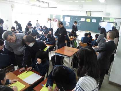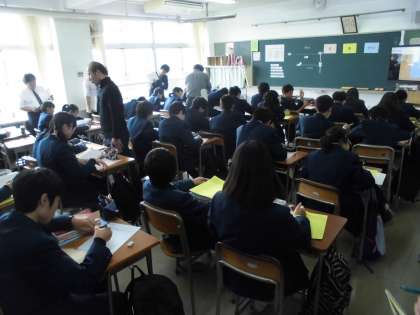 11月16日(水)、本校で学び舎の小中合同研修会が行われました。思考力をテーマにして、小中で議論を重ねてきた授業を中学校で行っています。