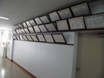 校長室、職員室前の廊下には、喜多見の先輩たちが勝ち取ってきた数々の栄光が展示されています。ぜひそのことを誇りに、今ある生活を大事にして頑張ってほしいと思います。