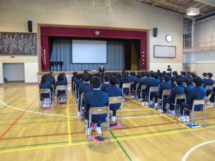 1月11日(水)、5時間目に1年生は学年集会を行いました。28日に行われる「14歳の成人式」の意義について、副校長先生よりお話がありました。また学年での取組として、各自が川柳の制作を行いました。