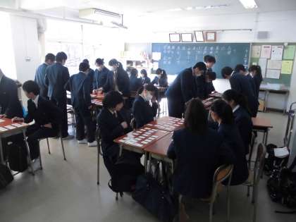 1月12日(木)、3学期が始まって3日目。少しはリズムは戻ったでしょうか…。2年生の国語では、月曜日に行われる「百人一首大会」に向けて、百人一首を覚えながら、競技の練習も行っていました。