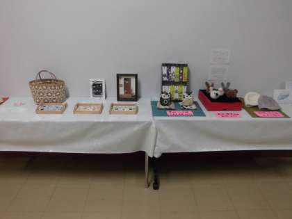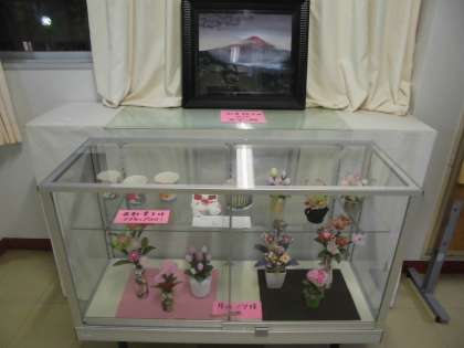 紹介の最後は、PTA・地域の方の作品です。2階の職員室前に作品が展示されています。陶芸や編み物、写真や工作などなど。多種多彩な工芸の数々。地域の皆様、保護者のご協力に感謝いたします。