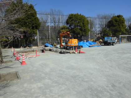 今週の月曜日から、砂場を移設する工事を行っています。体育館棟の前への移設です。校庭の風景も変わりますね。