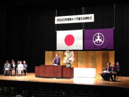 2月28日(火)、世田谷区民会館で世田谷区生徒・児童表彰式典が行われました。本校のバドミントン部女子とボルダリングで女子1名が教育長から表彰していただきました。区長と教育長からご祝辞もいただきました。