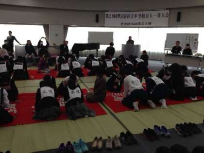 3月4日(土)、第29回世田谷区中学校百人一首大会が、教育センターで行われました。2年生男子2名が本校の代表として参加し、健闘しました。