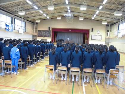 3月14日(火)、在校生の卒業式練習が行われています。あと4日で卒業式。在校生は歌練習や礼法指導を繰り返し行って、本番への準備をしています。