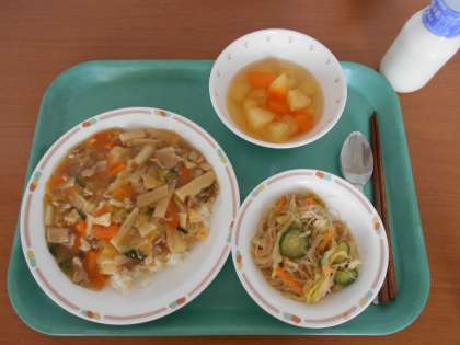 今日の給食の献立は、2年生が栄養のバランスを考えて