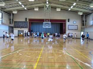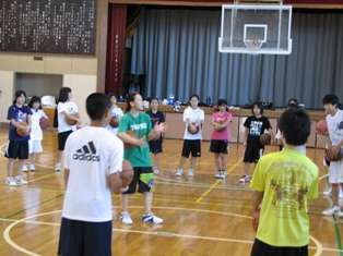 大学時代に米NCAAトーナメント出場を果たした元プロバスケットボールプレイヤーから指導していただきました。生徒は真剣そのものです。