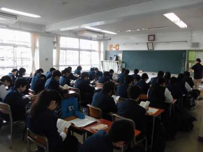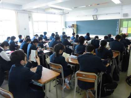 4月18日(火)、朝読書の一コマです。学校生活は「朝読書」から始まります。2年生はさすがに先輩になりました。落ち着いた朝を迎えて、1日が始まっています。