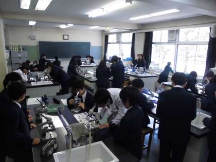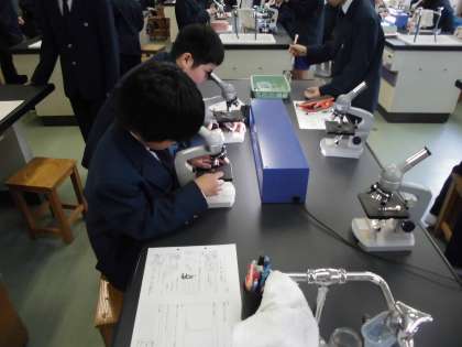 4月20日(木)、1年生の理科では顕微鏡で微生物を観察しています。楽しそうに活動していました。