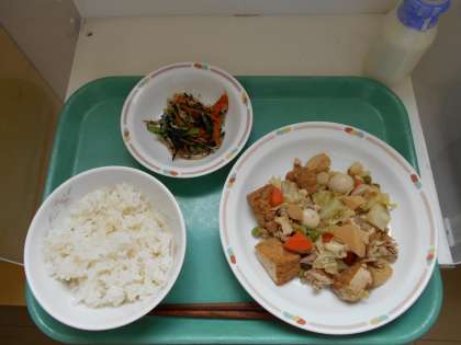 今日は今が旬の春キャベツと生揚げの煮物です。