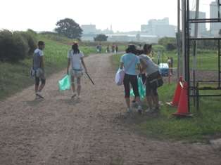 たまがわ花火大会が行われた会場の清掃活動に本校の生徒12名がボランティアとして参加。宇奈根会場と土手周辺を担当しました。