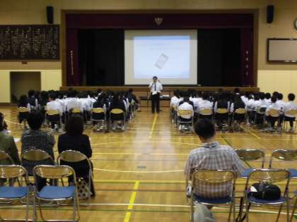 5月13日(土)、土曜授業日ですが、あいにくの雨になりました。1年生は「ネットリテラシー講座」を行い、業者の方からの話を聞いています。ネットにはまだまだ気を付けなければいけない点がたくさんあります。このような機会を活用しながら、事故や事件から自分の身を守る力を身に付けていきたいですね。