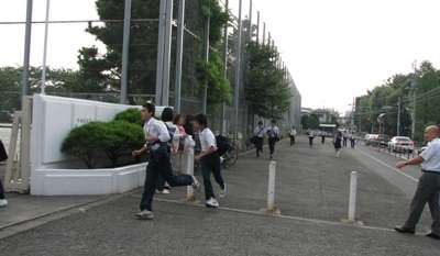 2学期最初のあいさつ運動です。チャイムまであと5分。