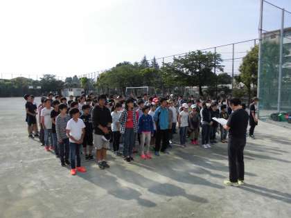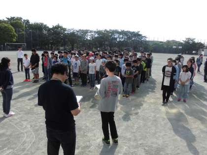 5月22日(月)、1年生の河口湖移動教室が始まりました。7時20分に校庭で集合して「出発式」を行いました。