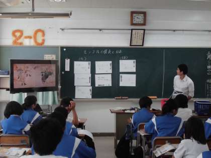5月30日(火)、2年社会の授業です。元寇のころの授業でした。ICTを活用し、生徒の思考をはぐくむ工夫をしています。