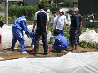 今日の内容は、種まき、支柱立て、寒冷紗留めです。