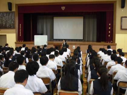 6月9日(金)、1年生で「いじめ防止プログラム」がスタートしました。第1回は全員で講義を聞きます。これから1学期の間で合計5回、クラスで議論を重ねていき、いじめのない集団づくりをしていきます。
