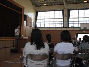 喜多見小学校体育館で「子どもを伸ばす親力」の講演会を行いました。