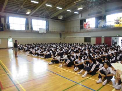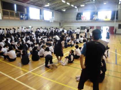 7月3日(月)、放課後に地区班編成が体育館で行われました。震災に対する集団行動ができるための意識づけです。9月の防災の日に集団下校を行います。