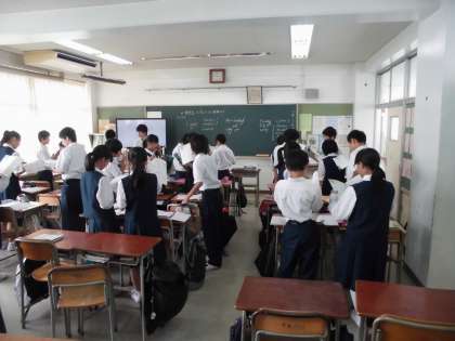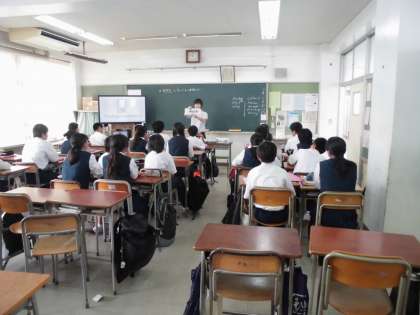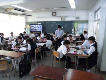 7月7日(金)、1年生の英語の授業です。少人数習熟度クラスで行っています。コミュニケーションを中心とした授業構成で、ペアワークや対話形式で楽しく授業を進めています。