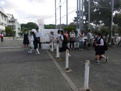 7月11日(火)、毎週火曜日は「あいさつ運動」です。生徒会、保護者の方が早朝から元気にあいさつを行っています。