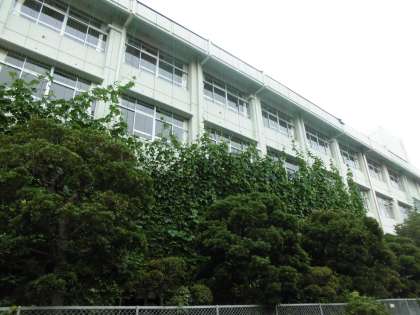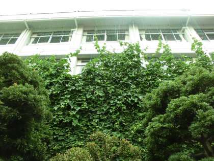 校舎をどんどん覆っている緑のカーテン。いよいよ3階まで伸びてきました。