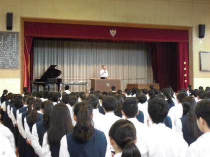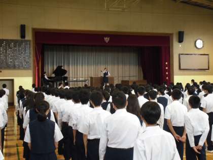 9月1日(金)、2学期がスタートしました。長い2学期です。体調管理に努めながら、充実した学校生活にしていきましょう。校長先生から夏休み中の皆さんの活躍について、また2学期に向けての心構えについての話がありました。バドミントン部と個人競技(ボルダリングで国体に出場)についての表彰がありました。
