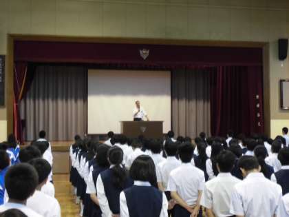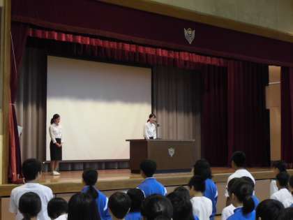 9月4日(月)、全校朝礼が行われました。校長先生からは「読書活動や新聞を読むことなどの活字に親しむことを目標にしてほしい」との話がありました。図書館運営改善校、NIE実践校として、さらに充実した活動を考えていきたいと思います。また、今日から給食実習も始まり、来週までの2週間、昭和女子大学の2名が実習に励みます。