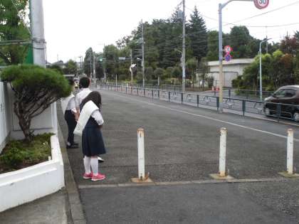 明日が本番の生徒会役員選挙。正門の前で最後の訴えをしています。