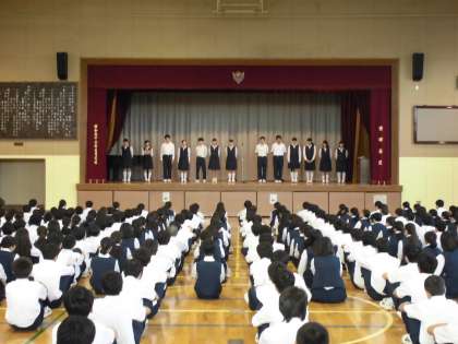 生徒会朝礼(新旧引継会)