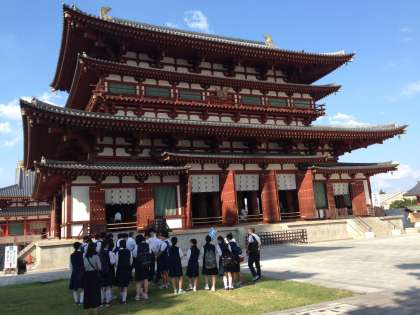 薬師寺に到着。古都の雰囲気が十分に伝わってくる重厚な建築物です。