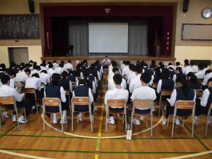 10月10日(火)、3連休明けです。1時間目に3年生は進路説明会を行っています。これから事務的な内容も増えてきます。大まかな流れを説明しています。保護者向けは、今週の土曜日(14日)に開催します。