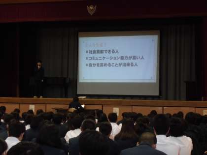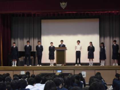 10月16日(月)、生徒会朝礼が行われました。これから後期の活動が具体的に進んでいきます。生徒会から、後期委員長から新たな取組や今後の目標などが発表されました。