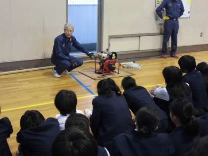 10月15日(月)、避難訓練が行われました。天気が「晴れ」であれば、校庭でD級ポンプの操作訓練でしたが、あいにくの「雨」。体育館でポンプ操作や消火訓練、AED操作訓練を行いました。いざという時に使いこなせるようになりましょう。
