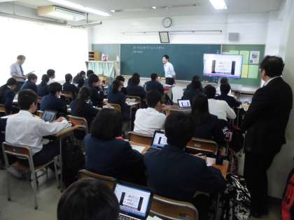 10月18日(水)、小中合同研修会が喜多見中学校で行われました。中学校の社会、英語、体育、技術を参観し、「思考力」の育成を小中合同で協議しました。