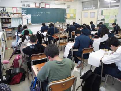 10月20日(金)放課後、漢字検定が行われています。学校運営委員の方々の協力を得て、小学生も参加して喜多見中学校で受検しています。